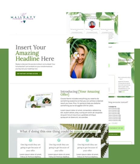 Download the systeme.io DFY templates for free to get your business up and running; they're 100% customizable. Add your brand colors and images, and your website will be online in record time.